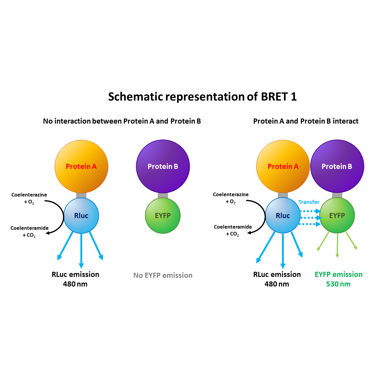 | BRET 1 | RLuc | Coelenterazine | 480 | eYFP | 530 |